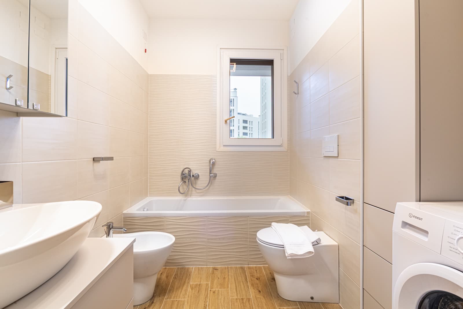 Appartamento elegante di oltre 100 mq con ampia terrazza privata in Merlata District. Due camere (matrimoniale e singola), può ospitare fino a 5 persone completano la casa due bagni moderni e zona living con divano letto. Ideale per famiglie, coppie o professionisti in trasferta. Gli ospiti lo definiscono “spazioso, luminoso e impeccabile”. vicino al nuovo mall Merlata Bloom, con collegamenti rapidi al centro di Milano. Comfort, stile e privacy garantiti.